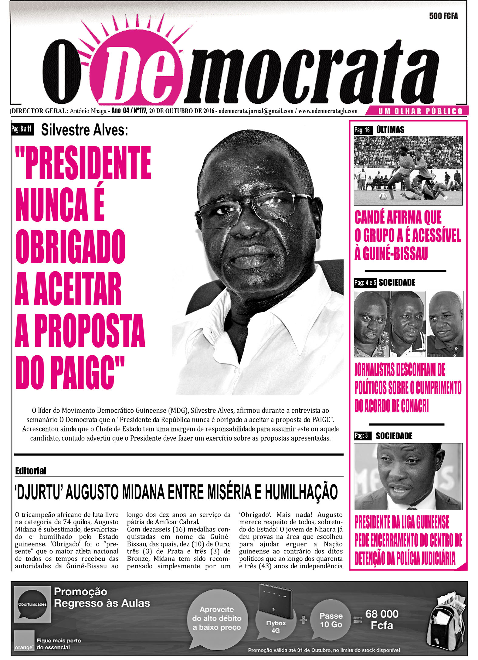 O político, que igualmente ocupa a função de porta-voz do Grupo dos cinco partidos políticos sem assento no parlamento (MDG, PSD, Aliança Socialista, Partido Trabalhista e PALOP), falou para a rubrica ‘Grande Entrevista’ com o intuito de fazer uma análise política sobre o ‘Acordo Político’ alcançado, em Conacri, entre os protagonistas da crise política e parlamentar que abala o país.