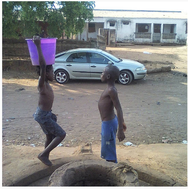 Num belo dia, talvez de sorte, estava eu a lavar as minhas roupas na varanda da nossa casa. De repente vi Totala a levar à cabeça um vasilhame de água, com a ajuda de outro menino, quase da mesma idade, que também tinha ido ao poço com o mesmo objectivo de apanhar água. Indo ao essencial, naquele belo dia consegui tirar-lhe uma foto com meu telemóvel, como testemunha para quando quiser contar a alguém, eu ter um suporte. Mesmo sabendo que tirei a imagem sem o seu consentimento, sei que se ela crescer e ganhar consciência, não me processará reclamando os direitos de imagem, pois gosto dela. Não tenho como ajudá-la se não partilhar essa história real que vivo na minha zona do Bairro Militar – zona de Pedrada.