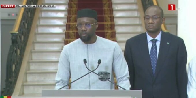 “Senhor, Ousmane Sonko é nomeado Primeiro-Ministro”, indica o decreto lido pelo Secretário-geral da Presidência da República Oumar Samba Bâ.