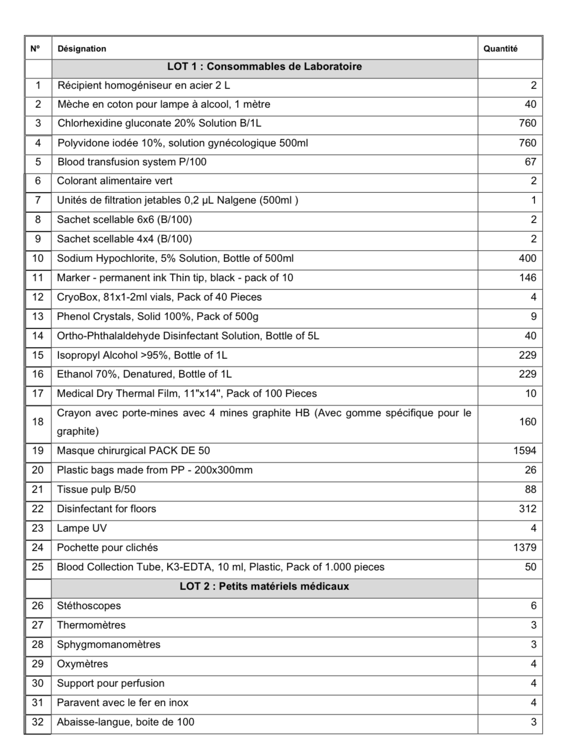 - Cet avis d’appel d’offres est destiné à la passation d’un marché de Fournitures de consommables de laboratoire pour les structures sanitaires dans le cadre du suivi biologique des patients atteints de Tuberculose et de VIH/SIDA.