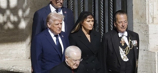 Trump e Melania fizeram uma pausa para rezar diante do caixão fechado do Papa.